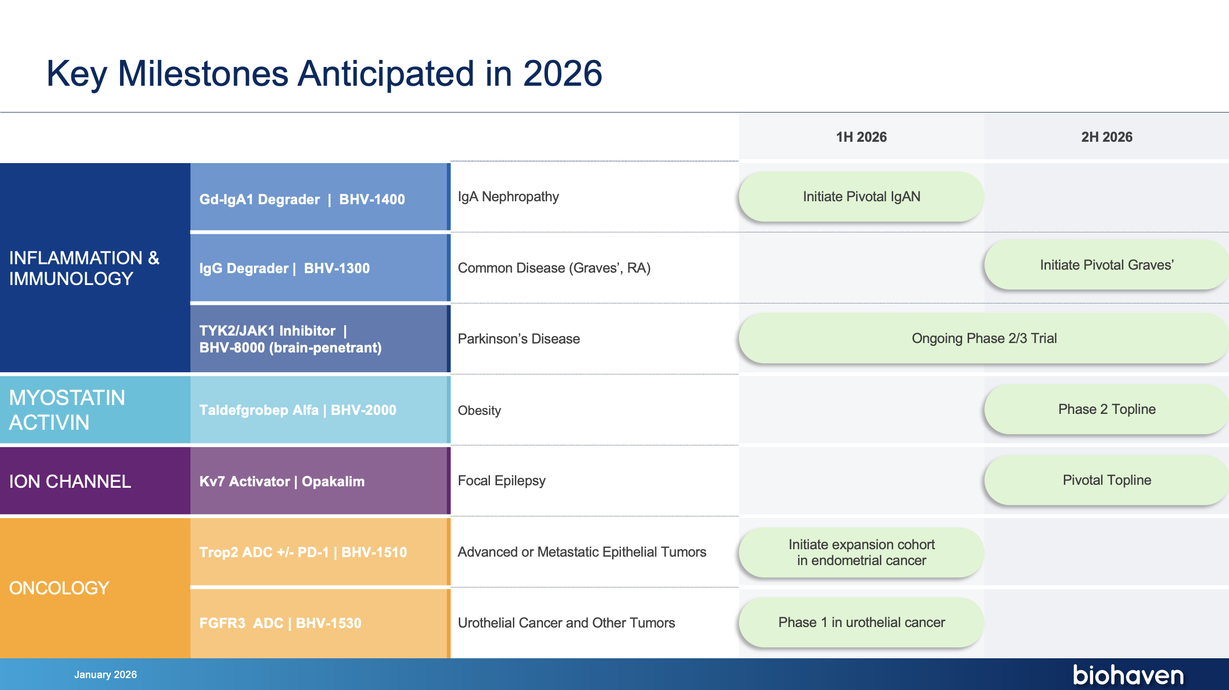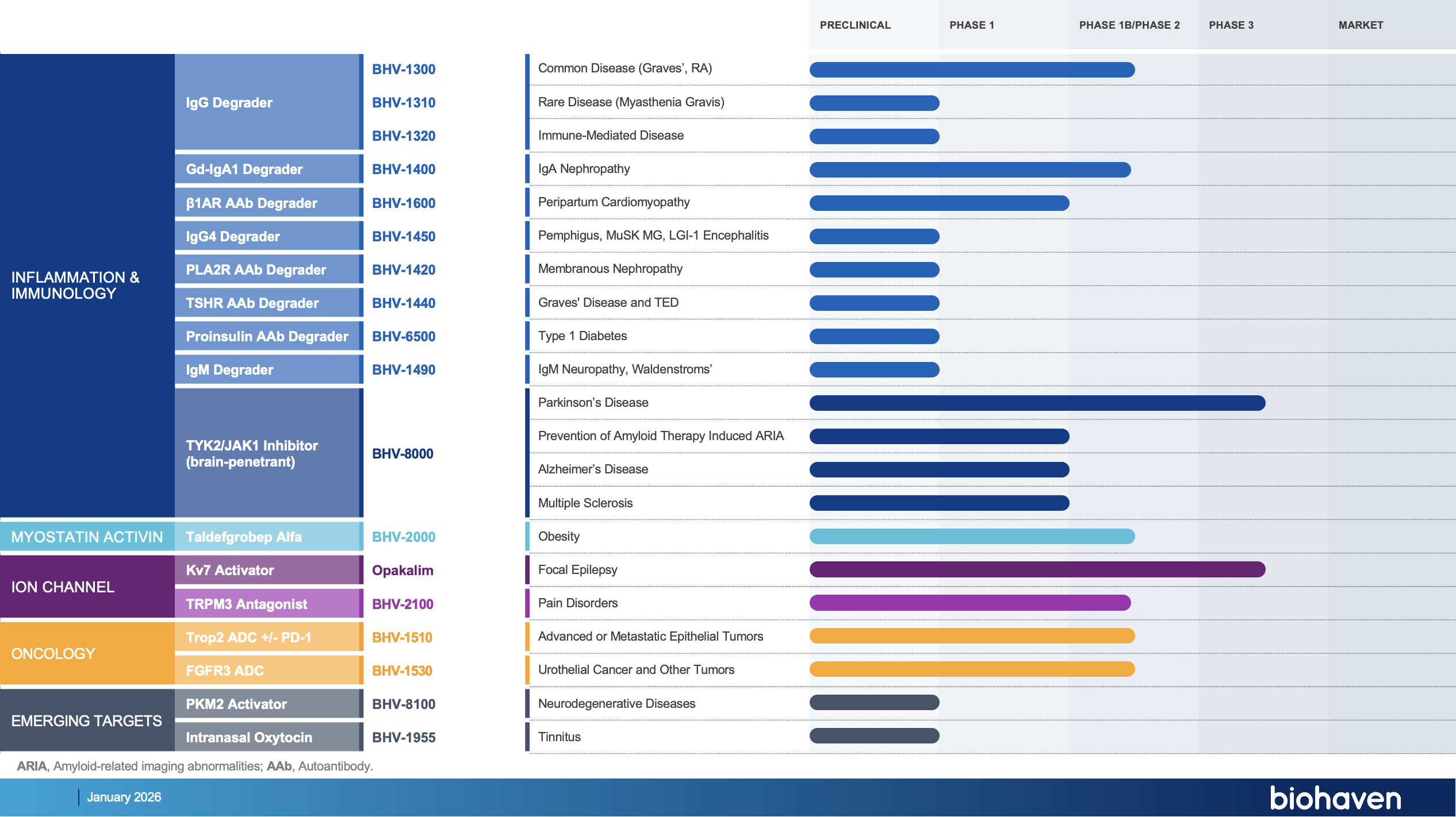 Our portfolio includes Kv7 ion channel modulation for epilepsy and mood disorders; extracellular protein degradation for immunological diseases; TRPM3 antagonism for pain disorders; TYK2/JAK1 inhibition for neuroinflammatory disorders; myostatin inhibition for neuromuscular and metabolic diseases, including SMA and obesity; antibody recruiting bispecific molecules; and antibody drug conjugates for cancer.